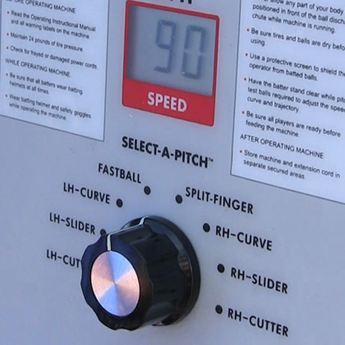 The machine boasts a speed range from 40-90mph and includes micro adjustments, select-a-pitch function, LCD display, all on a cast aluminum body for optimal durability and toughness.